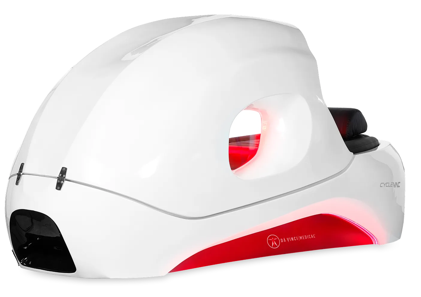 Enhance your workout experience with bike exercises in a closed capsule featuring infrared and pressure technology.